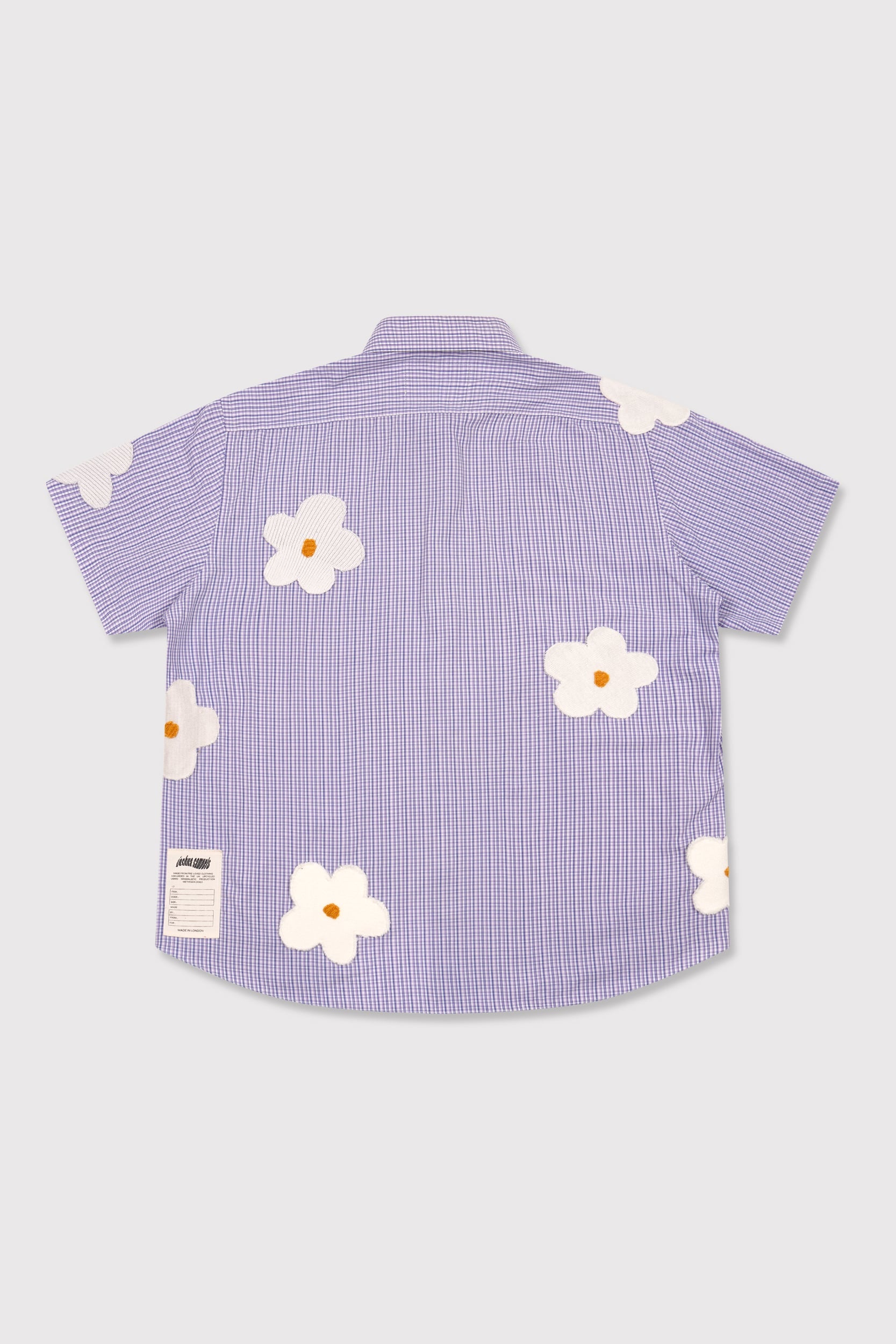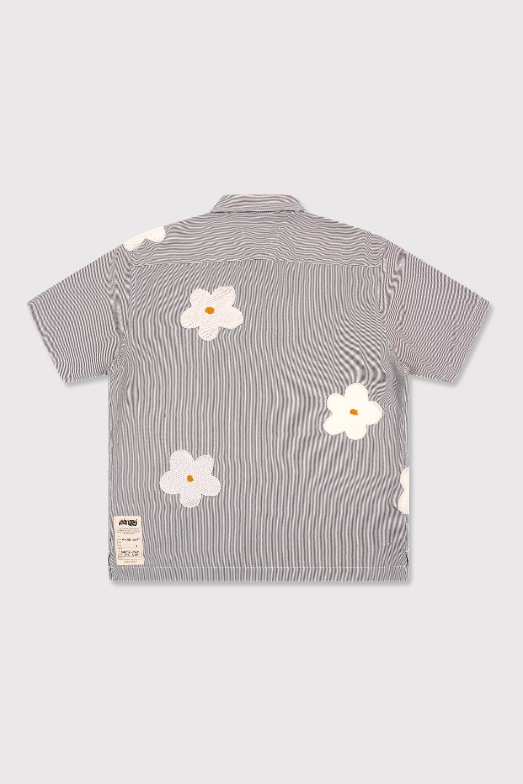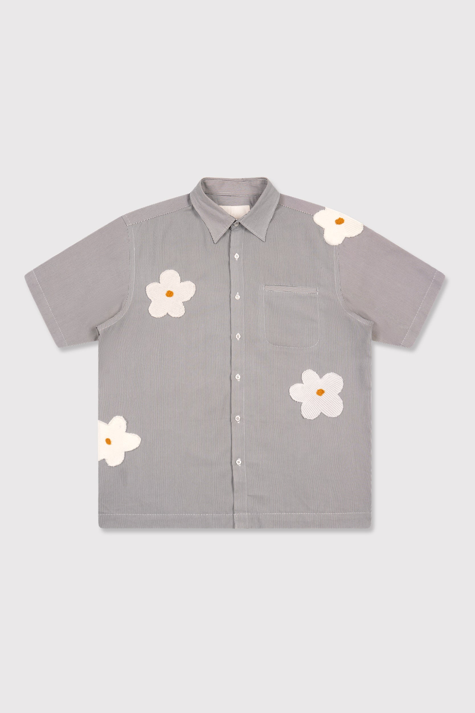 Each Flower Shirt is crafted from a carefully curated, hand-selected vintage shirt, making every piece truly one-of-a-kind. While the base shirts vary in colour, pattern, and fabric, all are adorned with hand-cut floral appliqués made from a selection of vintage cream knits.