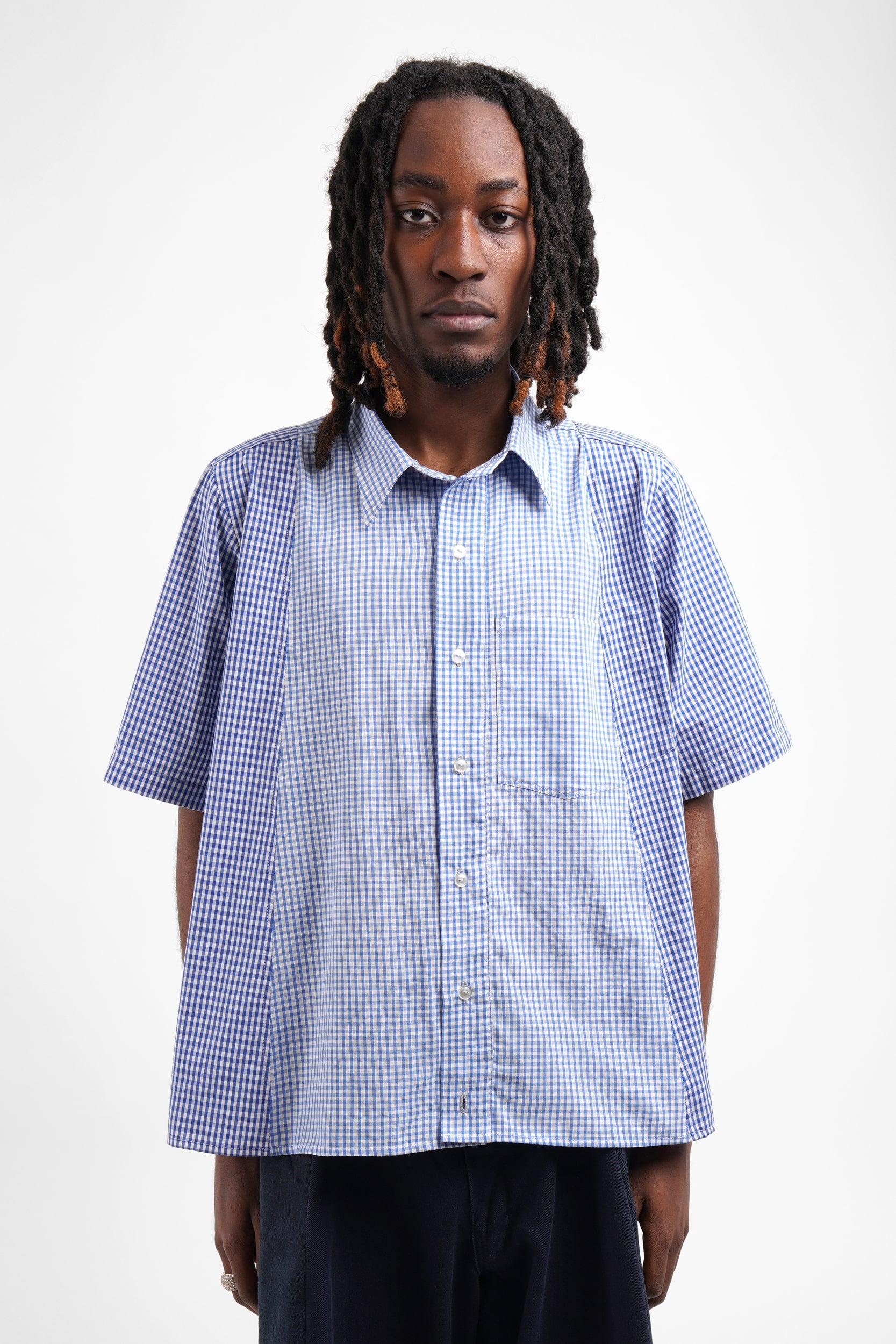 Each FO Baggy Shirt is made by carefully deconstructing two vintage shirts and reworking them into our signature baggy, boxy, cropped FO Baggy silhouette. Every shirt is one-of-a-kind, cut from a unique pair of shirts in your chosen colour, with variations in tone, pattern, and fabric, but always finished with the same considered shape and construction.