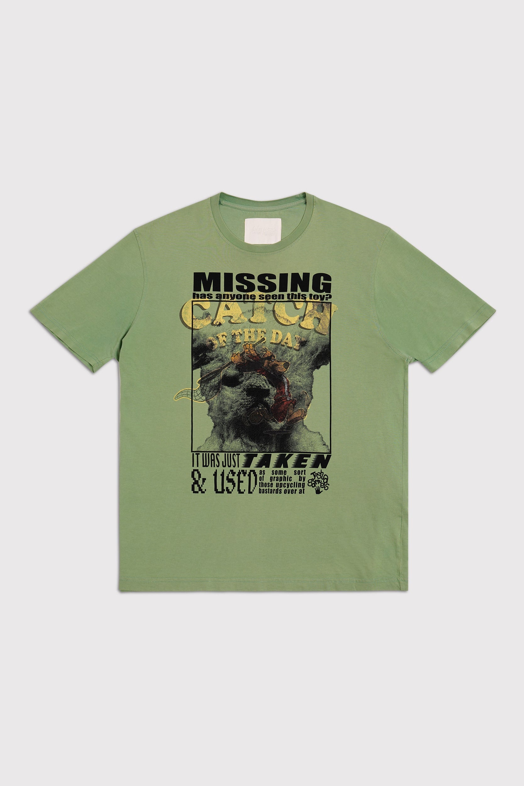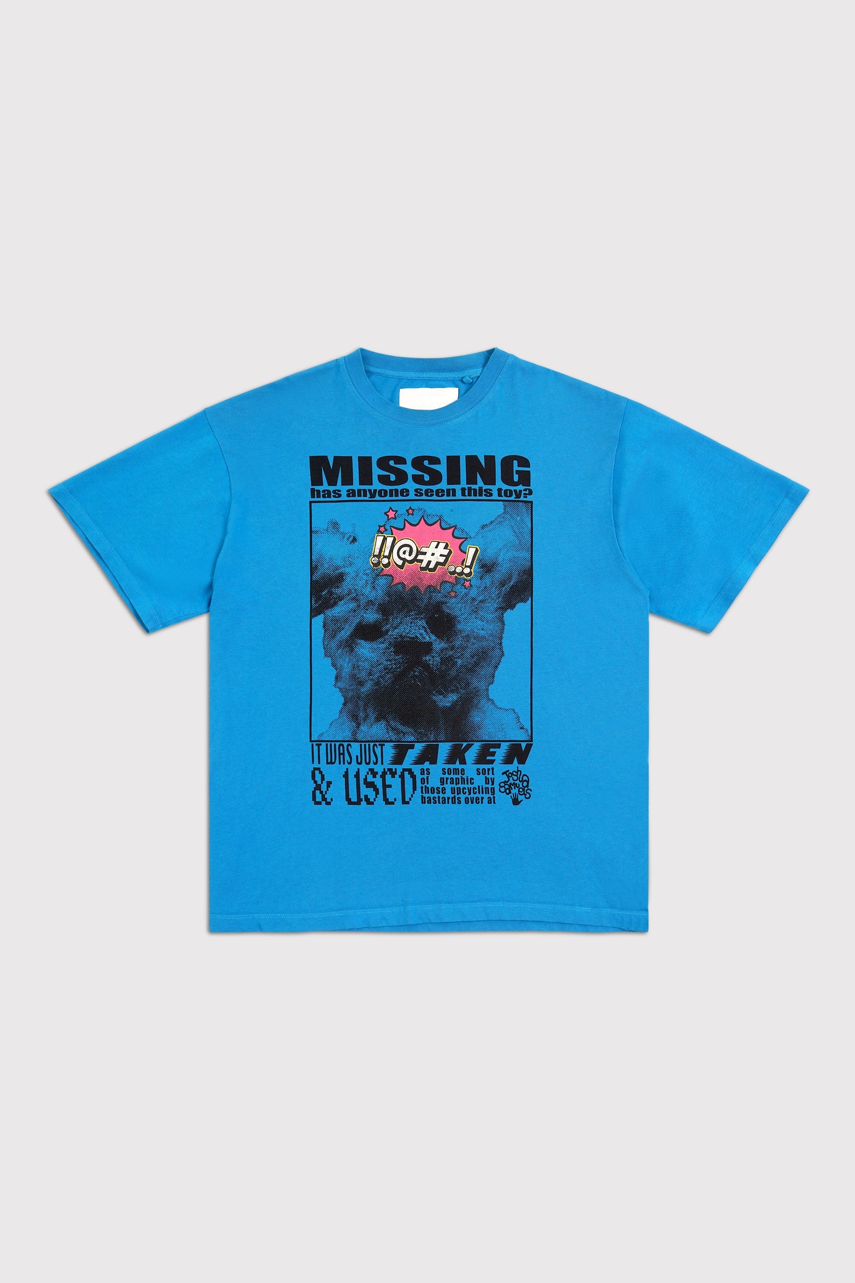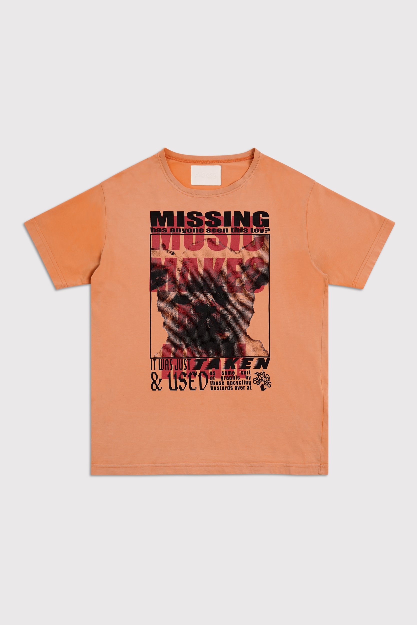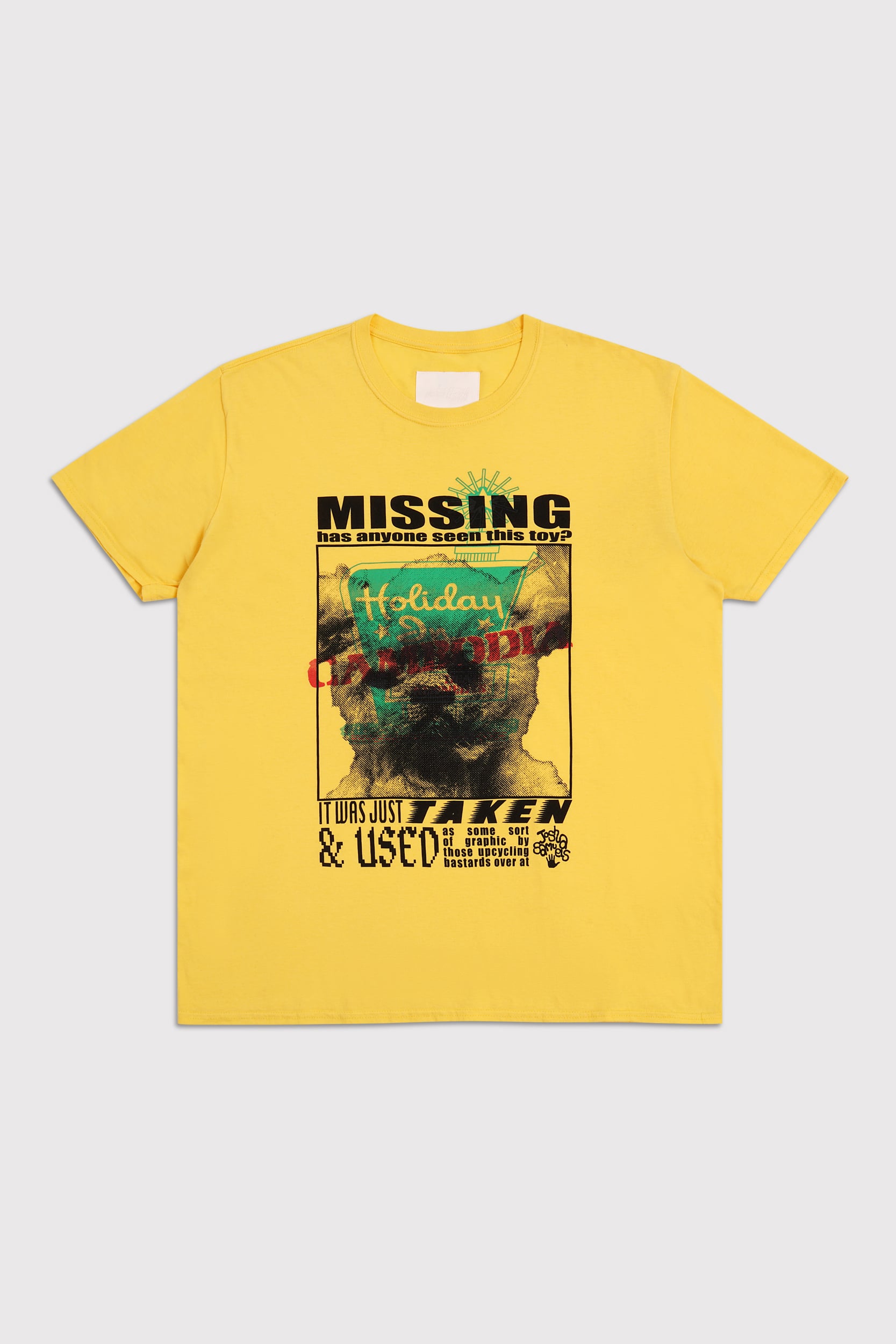 Each Missing! Tee is printed on a carefully curated, hand-selected vintage t-shirt, making every piece truly one-of-a-kind. The design you see in the photos is the one you’ll receive, but the tee itself will have its own unique character. Expect variations in colour, original graphic underlay, and tone - adding to the charm and history of each piece.