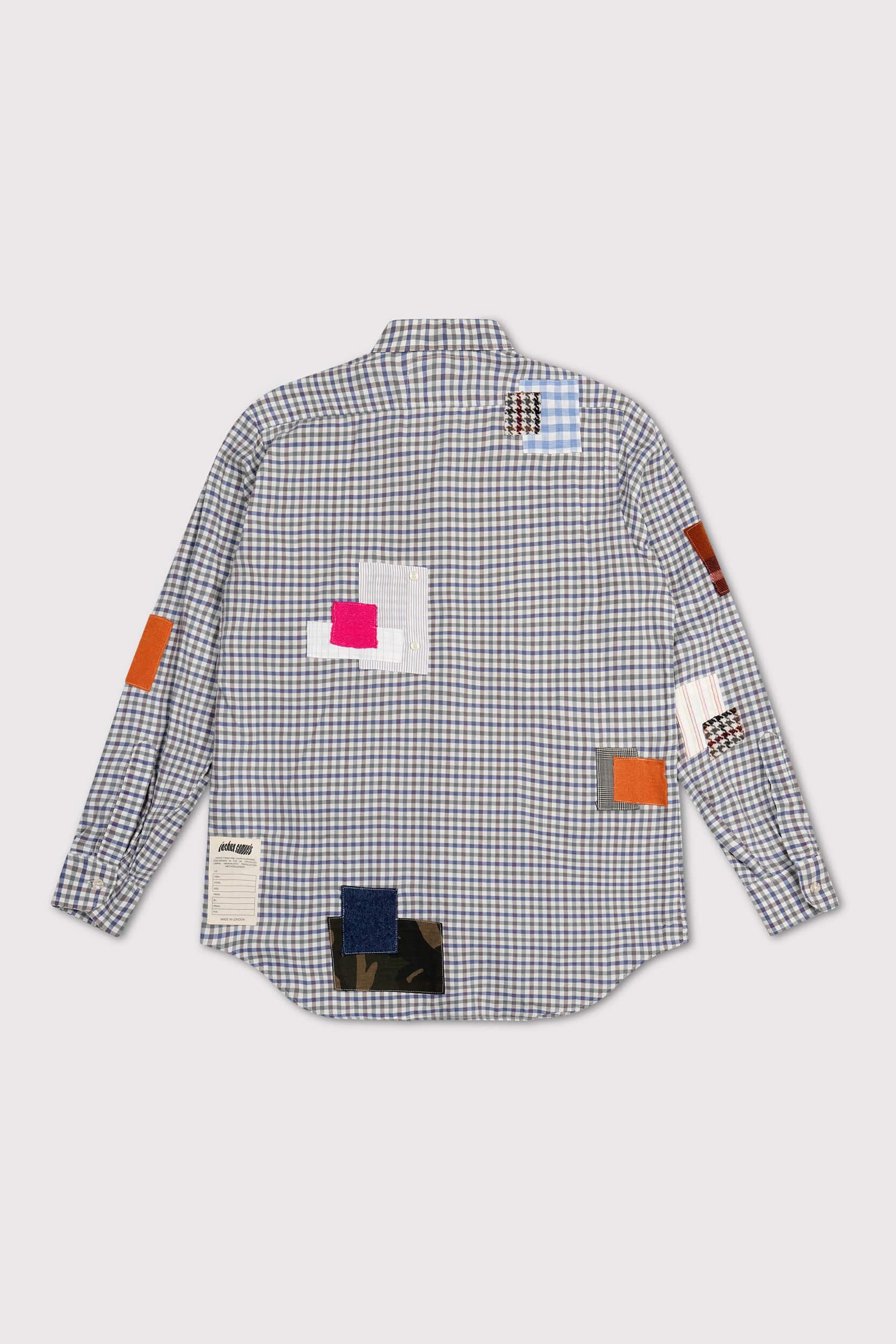 Each Patches Shirt is crafted from a hand-picked vintage shirt, unique in colour, pattern, and fabric. Every piece features a carefully considered scattering of patches, designed, placed, and sewn in-house in London by us, using garments discarded in the UK. We take great care with the design, placement, and assortment of patches, turning mending into the main design feature.