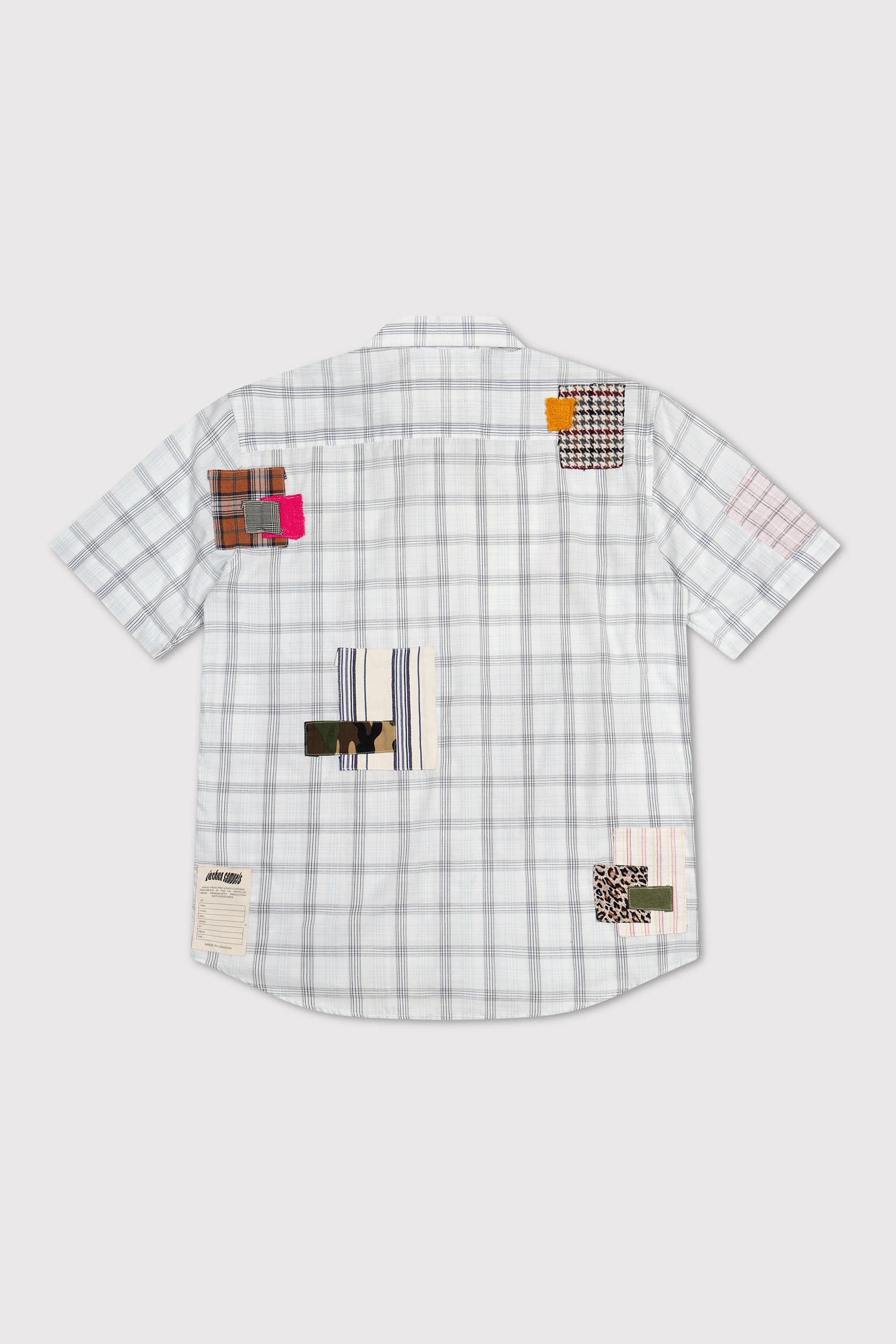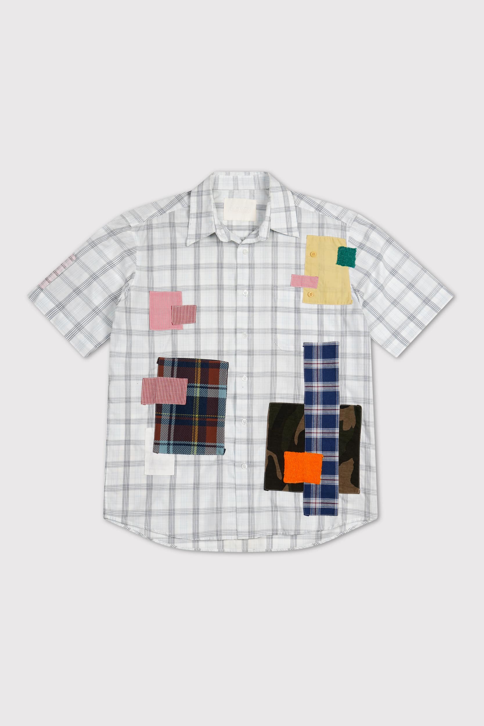 Each Patches Shirt is crafted from a hand-picked vintage shirt, unique in colour, pattern, and fabric. Every piece features a carefully considered scattering of patches, designed, placed, and sewn in-house in London by us, using garments discarded in the UK. We take great care with the design, placement, and assortment of patches, turning mending into the main design feature.