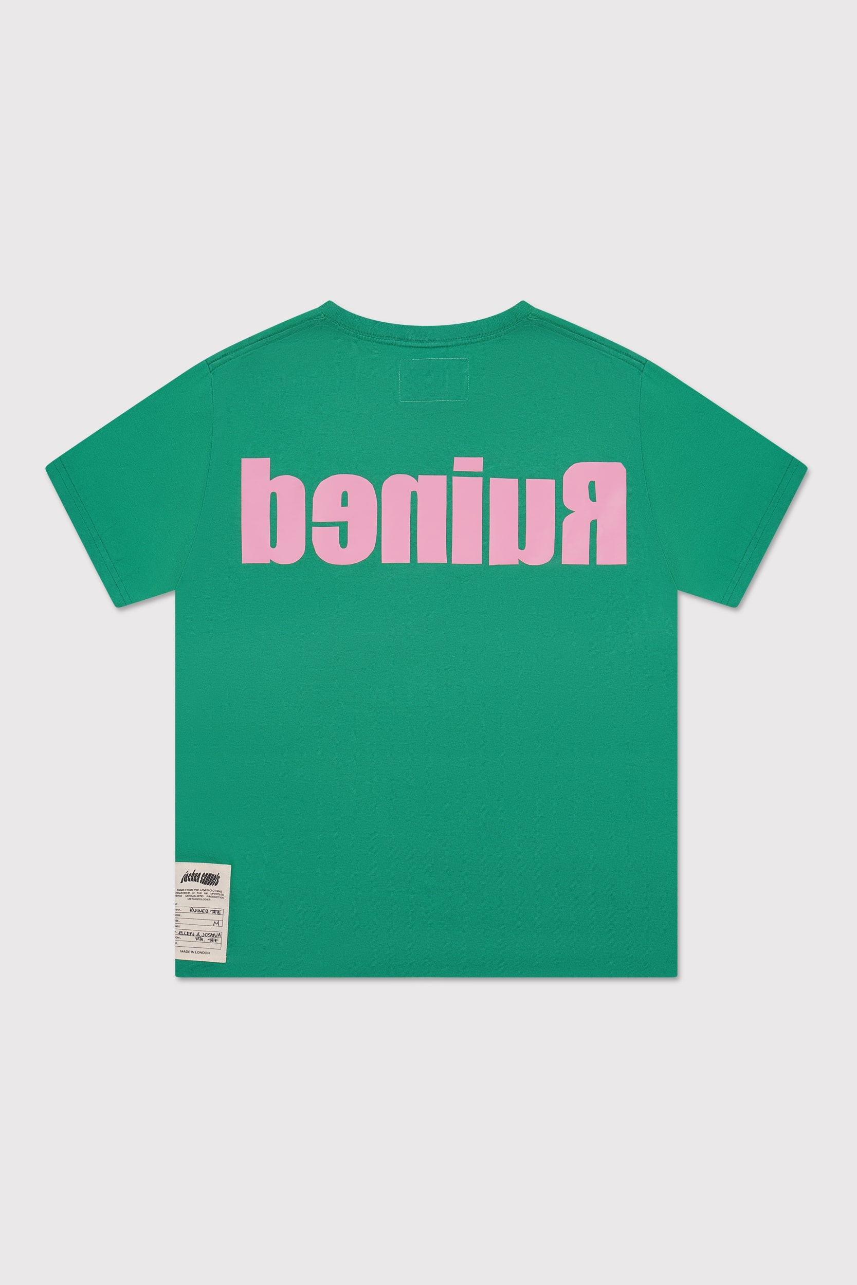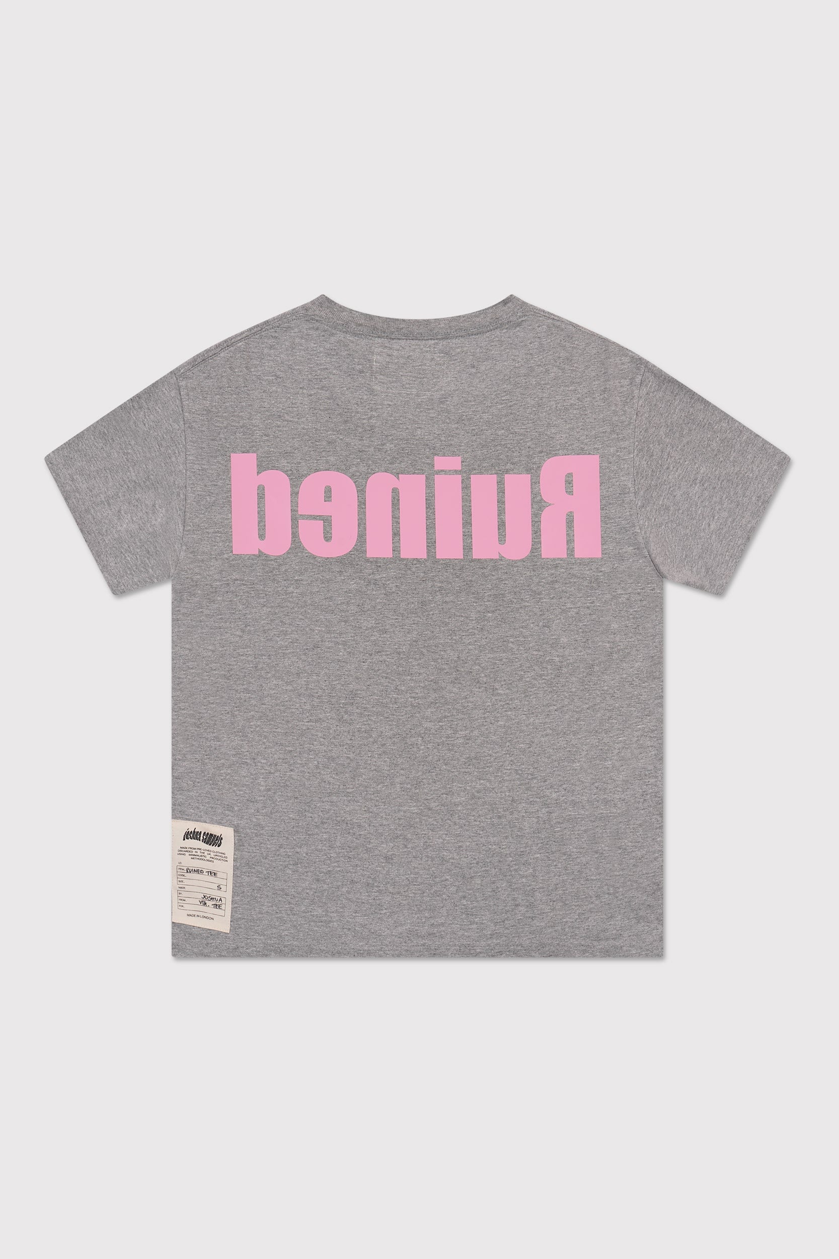 Cropped raw to a considered, flattering length, each tee is adorned with our ‘Ruined’ graphic, printed on the front, and printed wrong on the back.