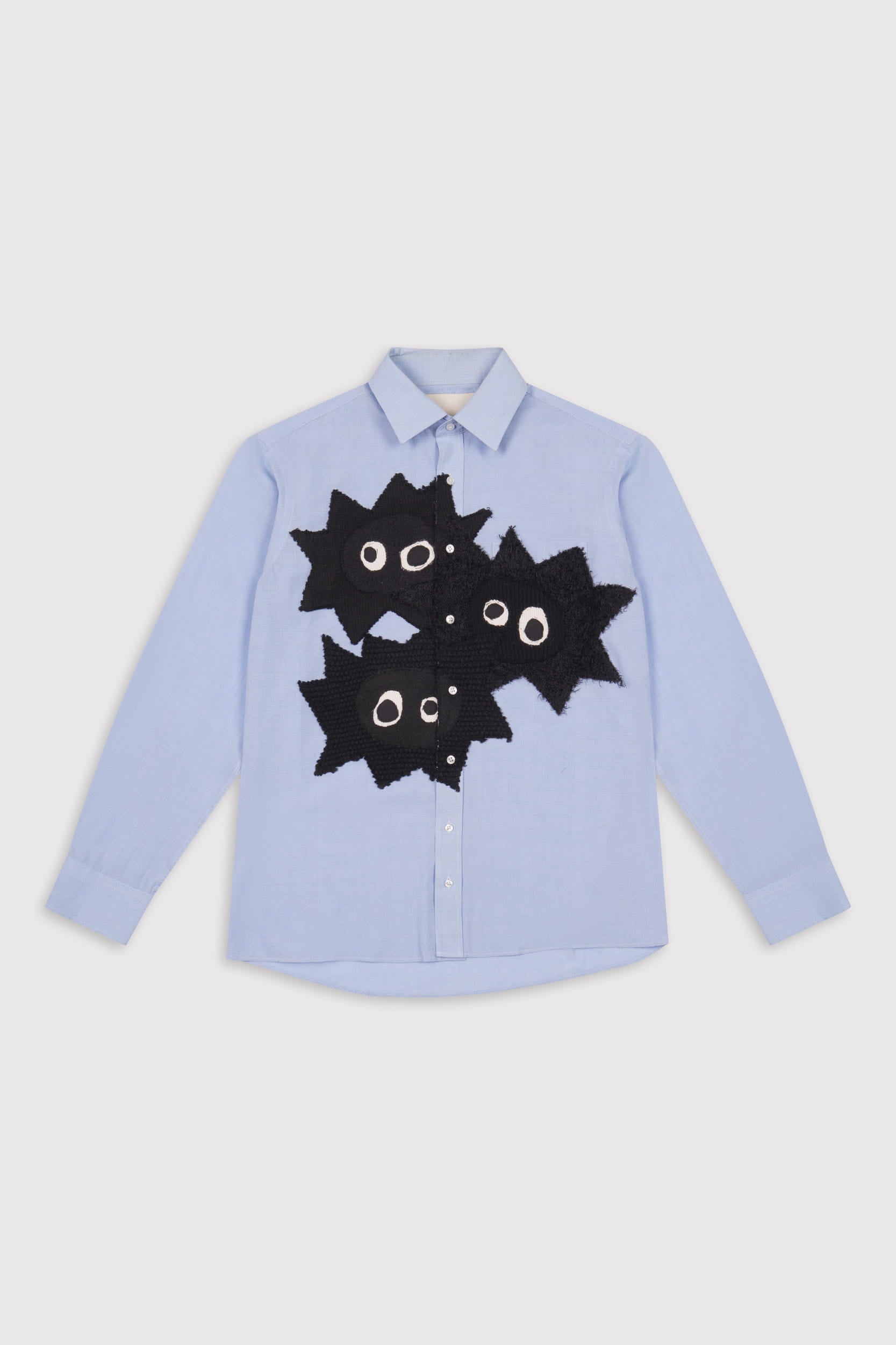 Every piece is one-of-one. Base shirts vary in colour, pattern and fabric - some striped, checked or plain. Product photos are examples of what you may receive