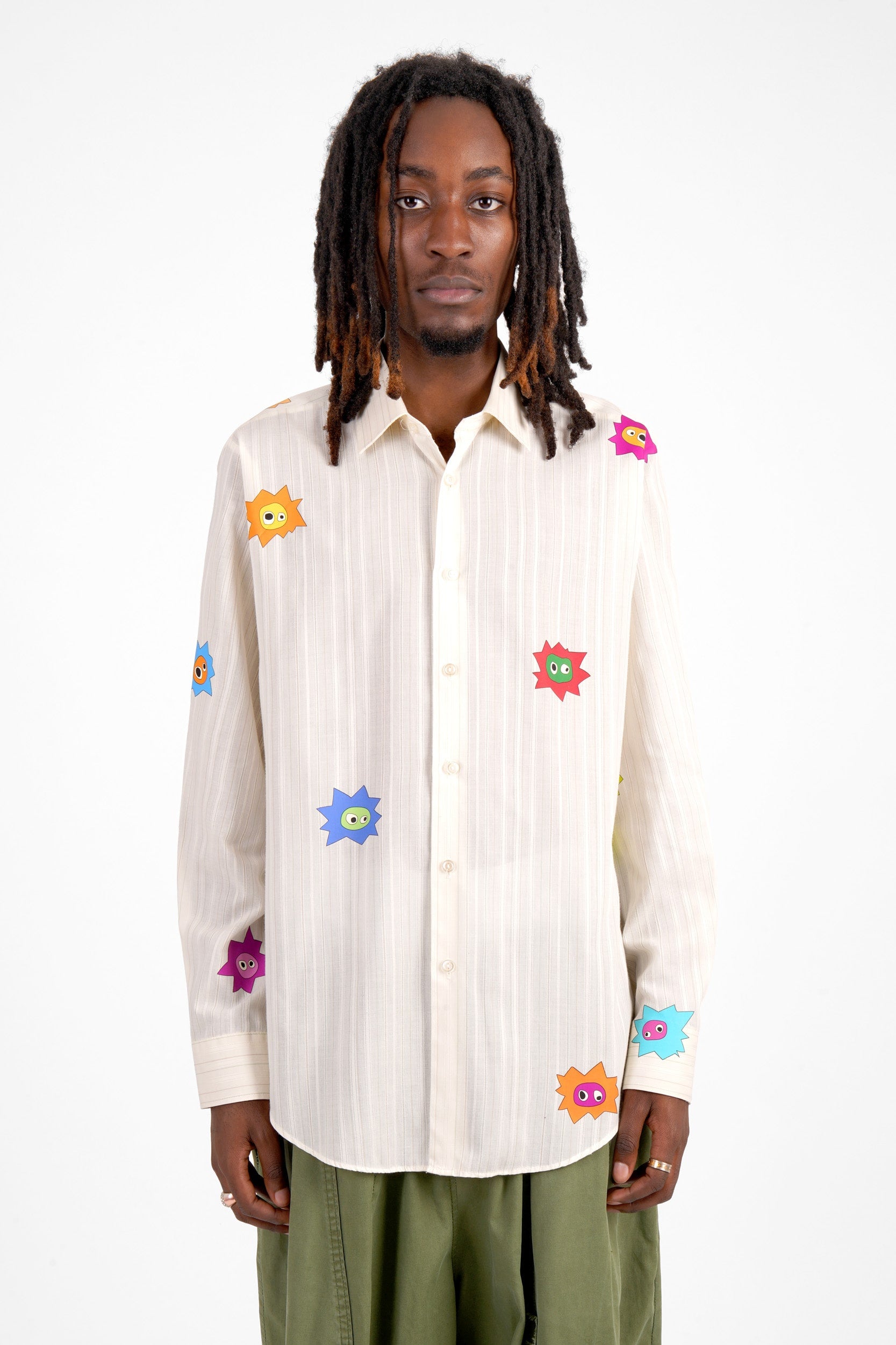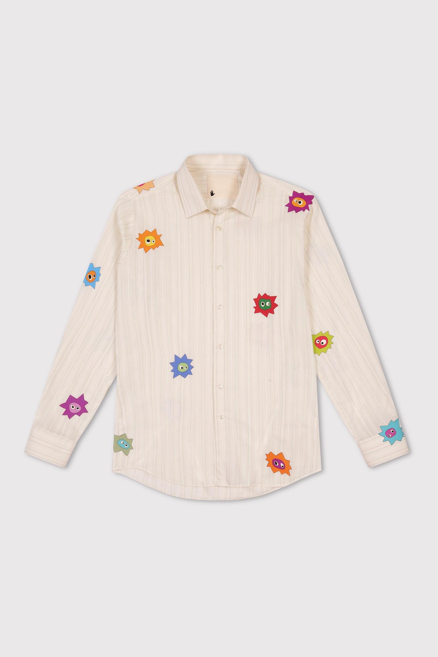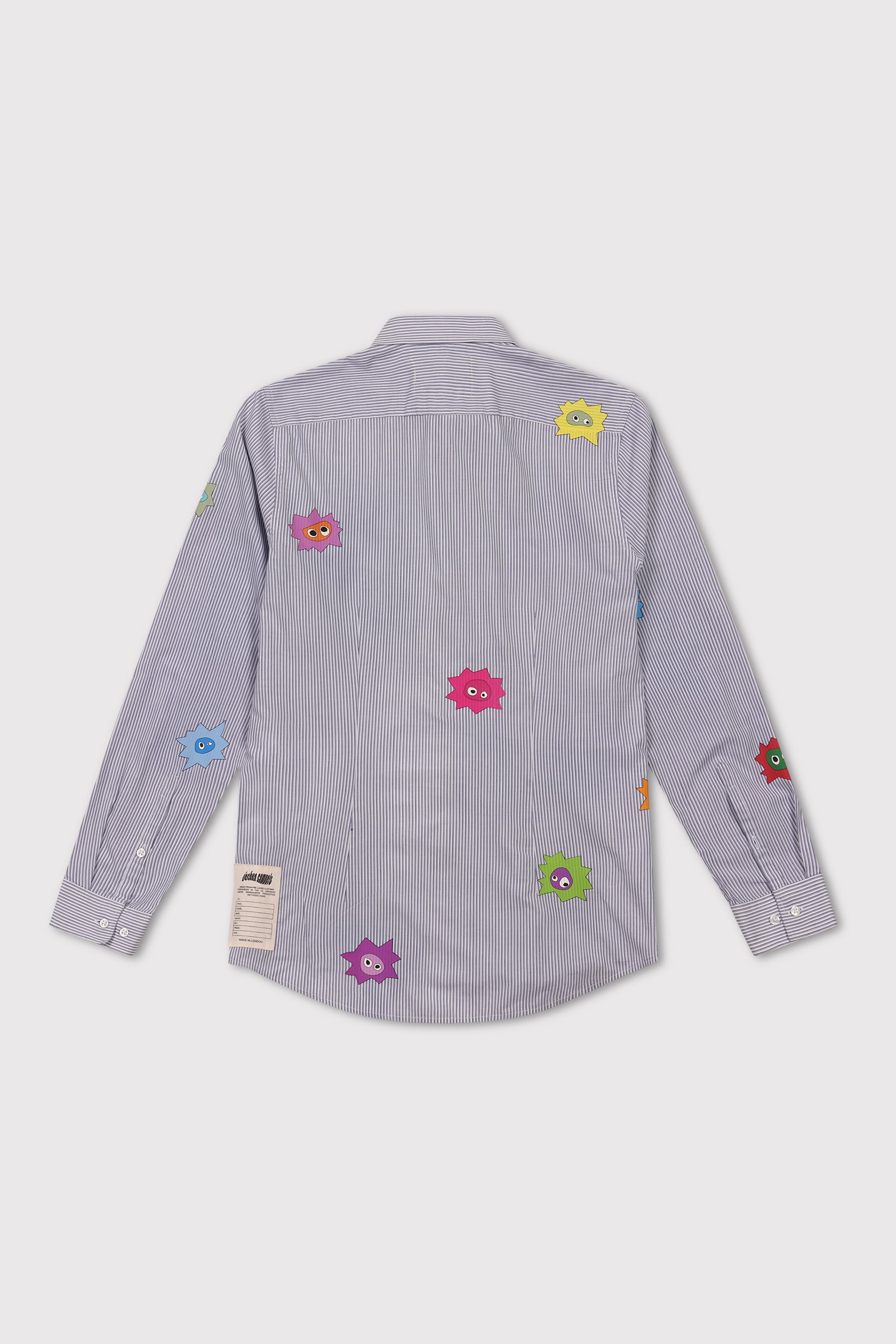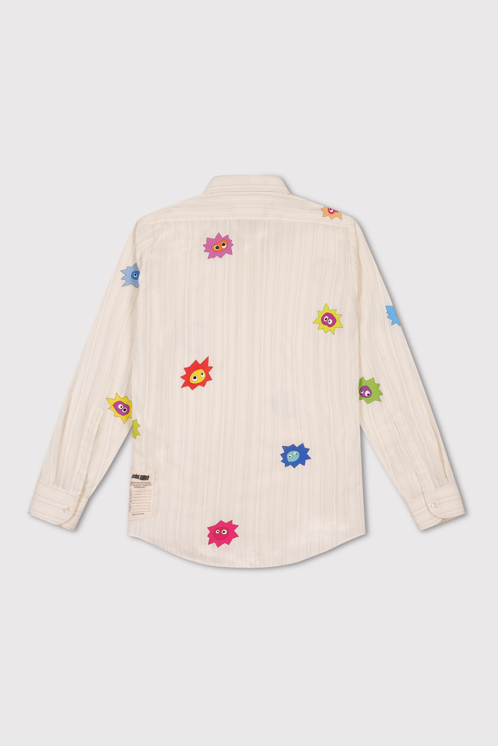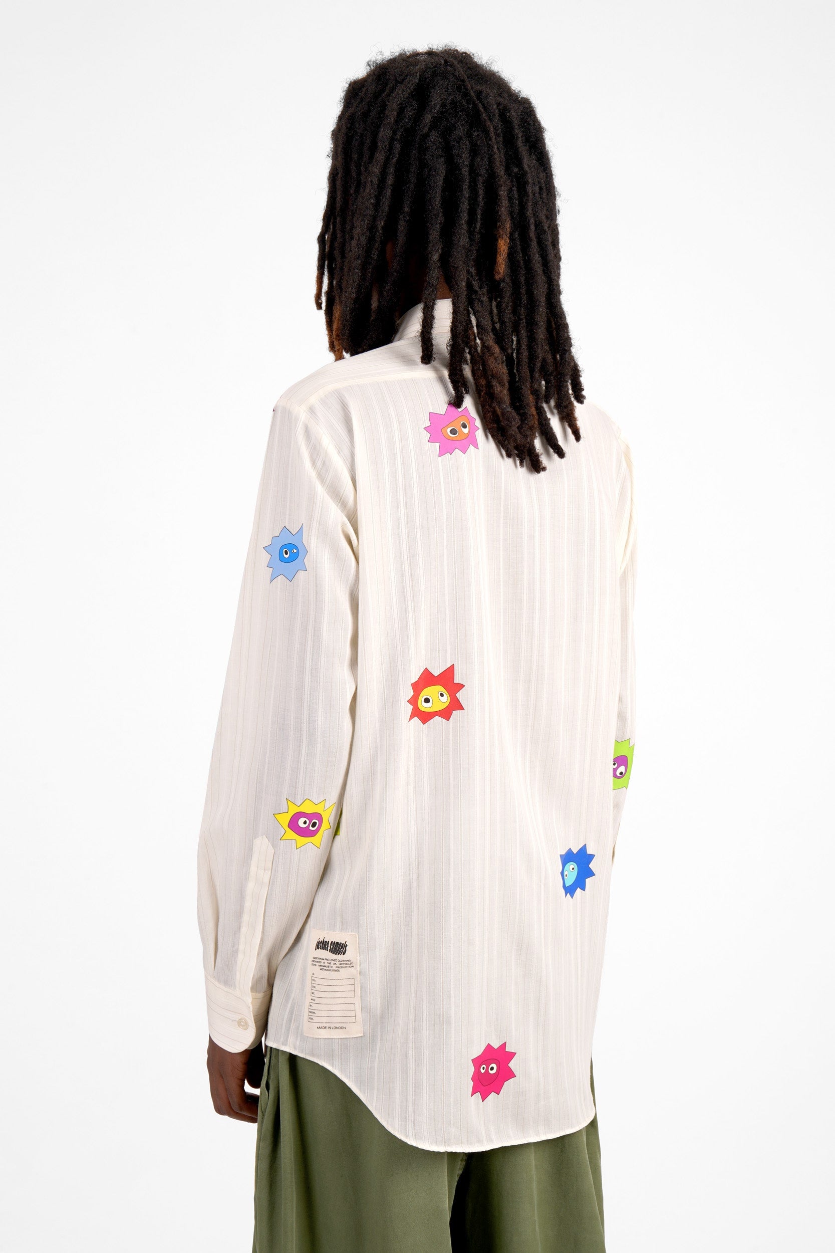 Each Whimsical Little Buggers Shirt is crafted from a hand-picked vintage shirt, each one unique in colour, pattern, and fabric. Every piece is overprinted with a carefully considered scattering of Whimsical Little Buggers, each in different colours and subtly different shapes. No two shirts, or print placements, are ever the same.