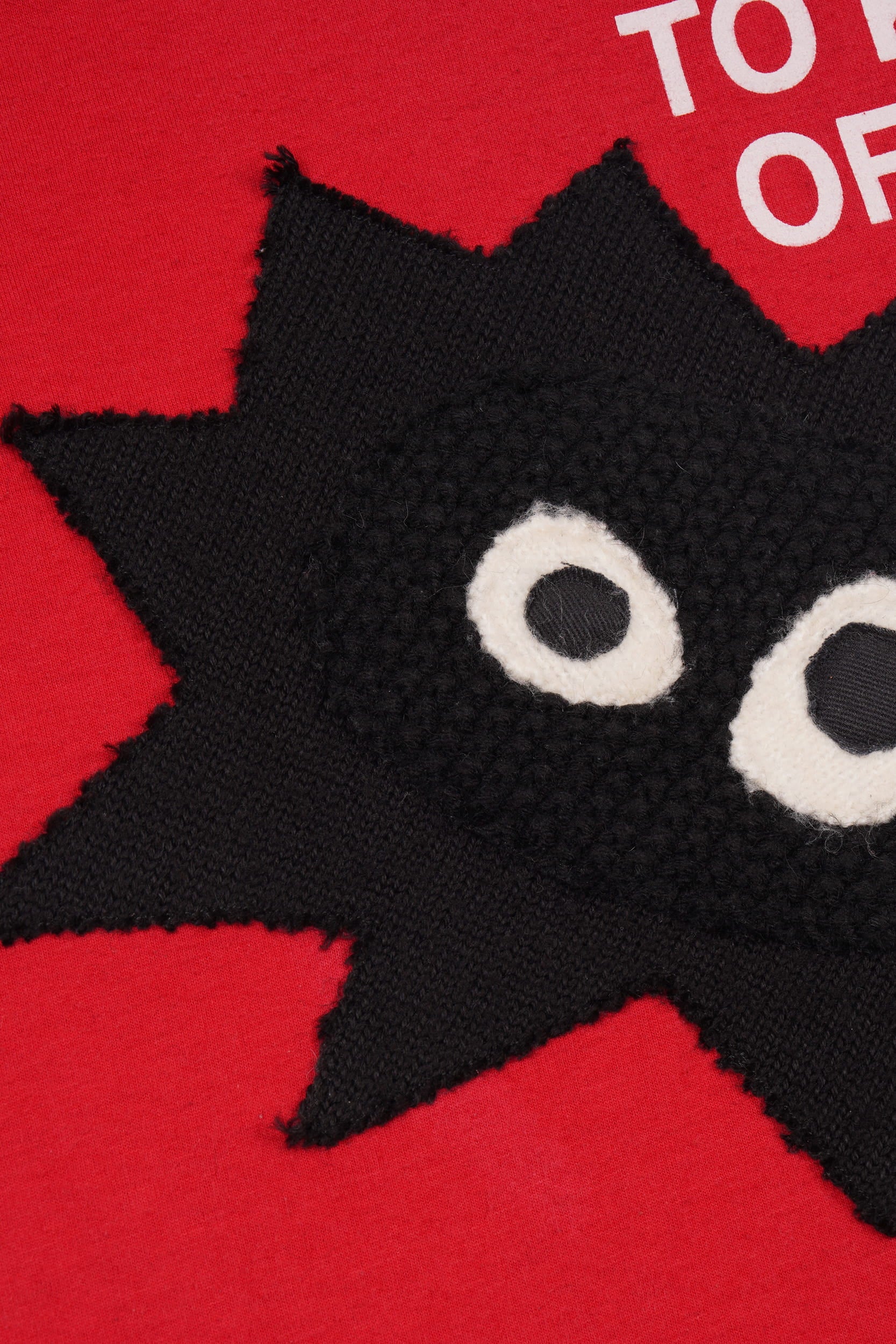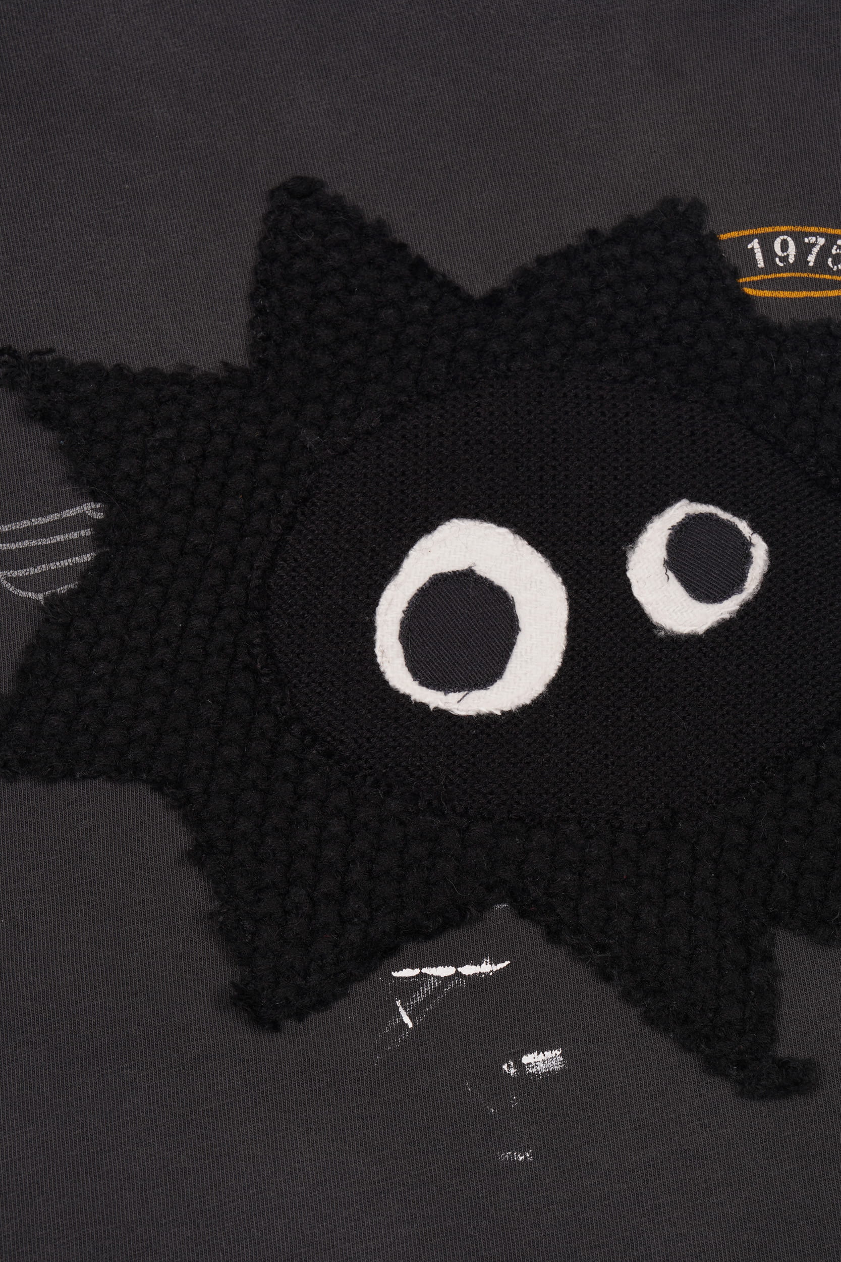 Adorned with a considered and uniquely placed hand-cut Whimsical Little Bugger appliqués, made from a curated selection of black vintage knits in various tones and textures.
